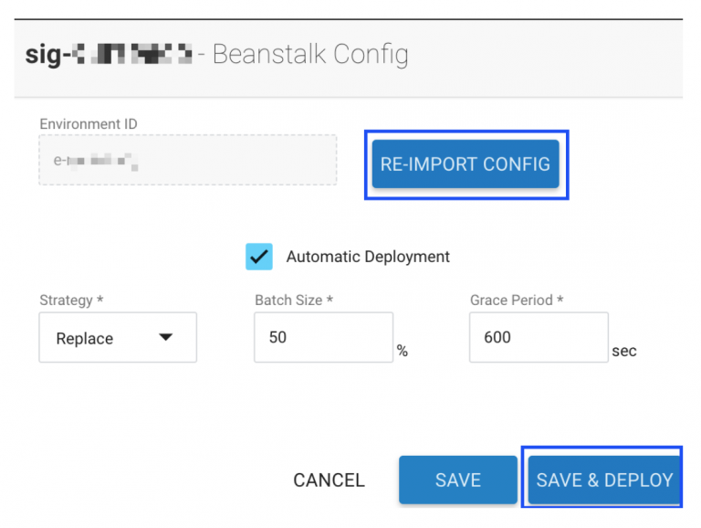Once Maintenance is completed and the necessary Elastic Beanstalk configuration changes are made, a blue-green deployment is forced where a graceful replacement of existing instances with new, updated instances (that contain the new configuration change) takes place.